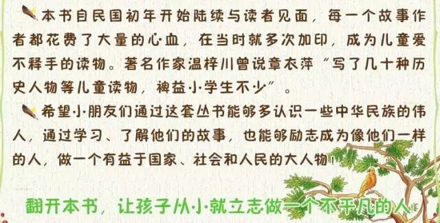 写这一套书的作家,是一位已经离开我们几十年的老爷爷,叫做章衣萍。这套书原名《中国名人故事丛书》,是章衣萍创作的一套中华民族历史上的大人物的故事丛书。
