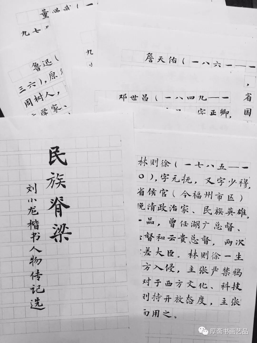 2017年10月16日,由中国文学艺术界联合会、中国书法家协会、中国文学艺术基金会、中国国家博物馆共同主办的”民族脊梁——迎庆的胜利召开全国书法大展”在中国国家博物馆隆重举行。厚斋刘小龙老师应邀为18位历史人物书写传记。