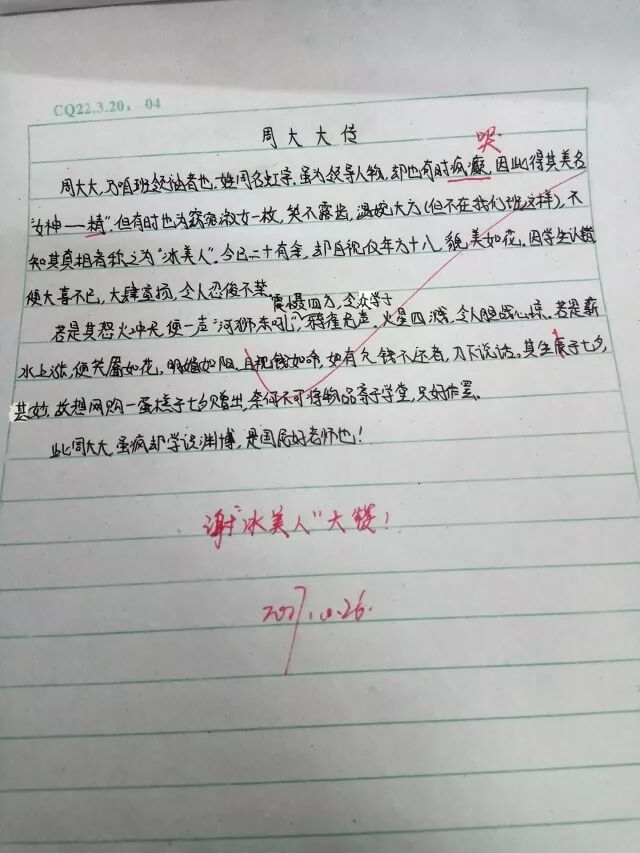 再叹一句,这里的老师都好“纵容”孩子们,竟靠作文“大胆犯上”。