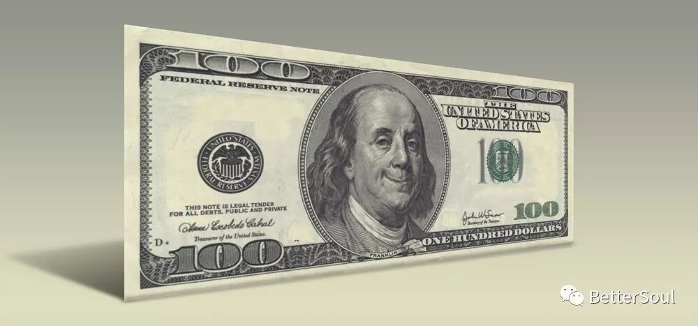 我们来看下100美金的纸币,。。