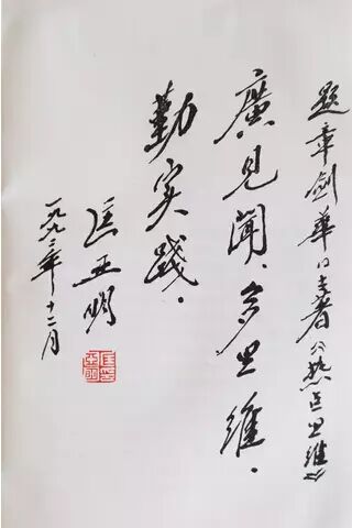 我不认识匡老,也不敢去打扰他,便托他的秘书朱维宁请匡老题词。令我惊喜不已的是,几天后,朱秘书就把匡老的题词转交于我:“广见闻,多思维,勤实践——题章剑华同志著《热点思维》”,我如获至宝,内心颇为感激和激动。