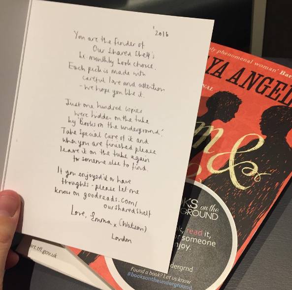 希望大家利用通勤的时间读会儿书,为了激起大家的读书欲望,她就把书籍藏在了地铁里,还在书中附上亲自手写的纸条,让大家像玩游戏般自己去寻找。
