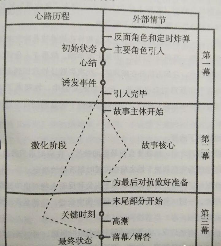杰夫·格尔克这本书的核心就是提出了“心结-关键时刻”写作模式,即整部小说实际上是从心结到关键时刻的准备、过程及其结果。从寻找人物的核心性格到设计解开“心结”的“心路历程”,将心路历程外化就自然是情节,按照经典的“三幕式结构”(引入、故事核心、高潮和结局)来架构小说,你在不知不觉中就完成了从人物到情节的完整创作。