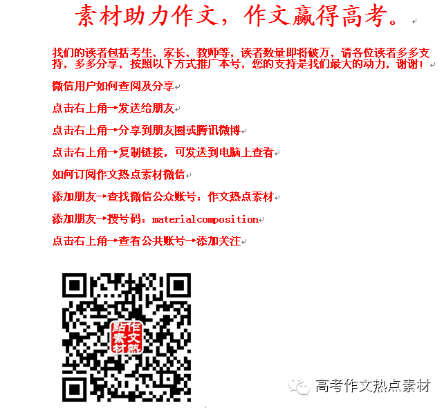 要求:选好角度,确定立意,明确文体(诗歌除外),自拟标题,写一篇不少于800字的文章。不要脱离材料内容及含义的范围作文,不要套作,不得抄袭。