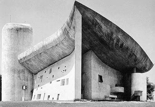 单体建筑方面,最强烈的对比是基本同时期建成的一对教堂:位于费城远郊的犹太教堂(BethSholom Synagogue)与朗香教堂。赖特采用半透明的有机板材(类似阳光板)覆盖整个屋顶,均匀柔和的自然光充满大厅,人们如同置身天空下却无风吹雨淋之忧。朗香教堂无需我的介绍。它的外观很可能是建筑史上最精美的雕塑,它的室内则是建筑史上最成功的舞台布景(此前,幽暗的室内基本上是贫困人家的代名词吧)。