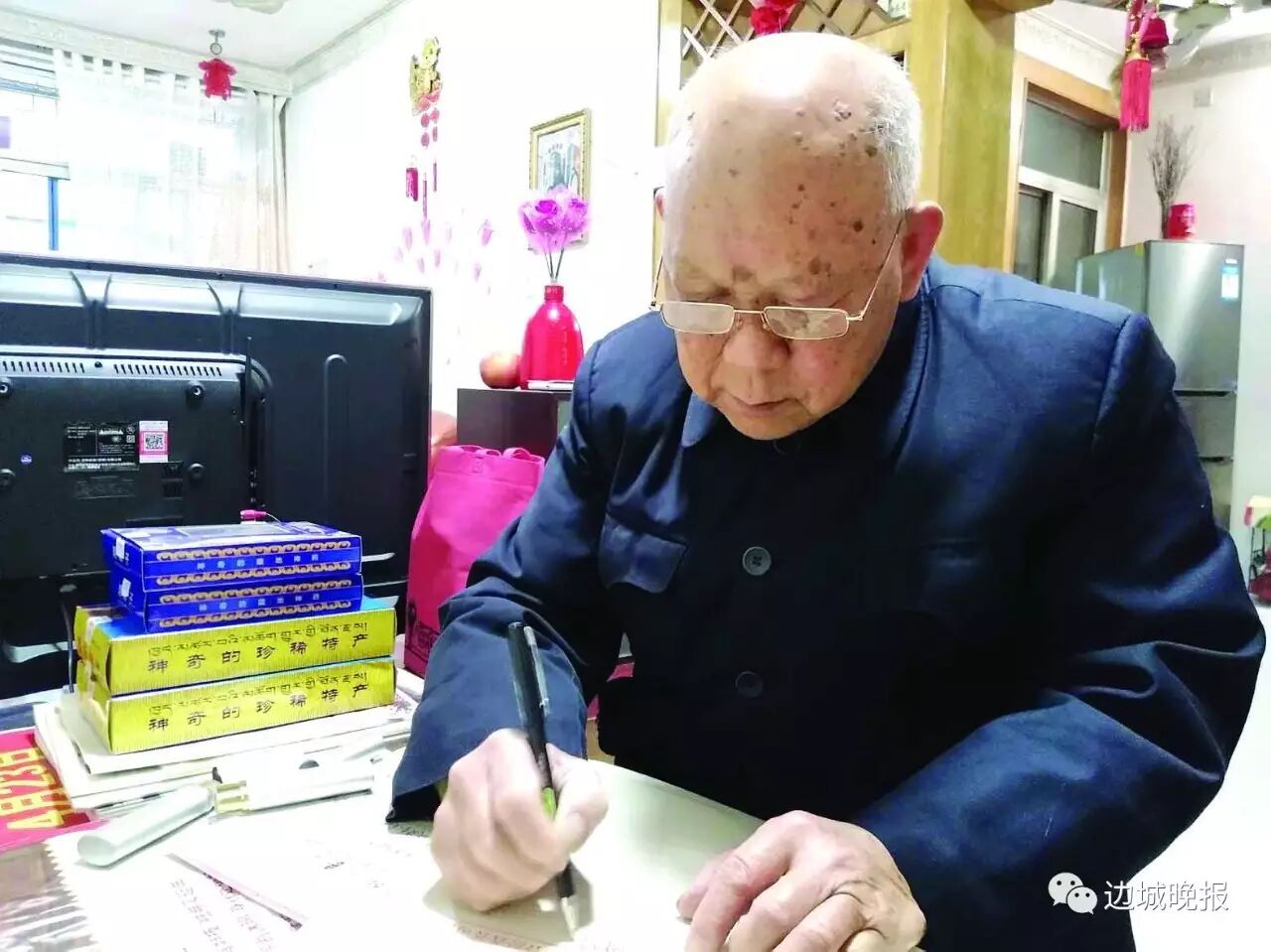 但对于一个初中都没有读完的老人而言,写书谈何容易。老人告诉记者,写作时经常遇到不会写的字,他就像小学生一样拿着字典翻,或向别人请教。每天笔耕不缀。“想起什么就记下来,不论是晚上还是白天。”