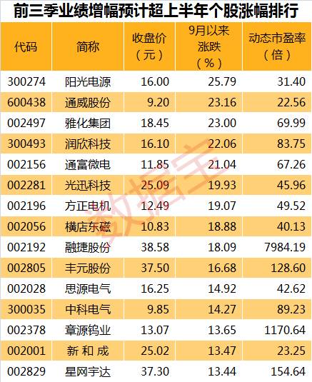 前三季业绩预增股引人关注