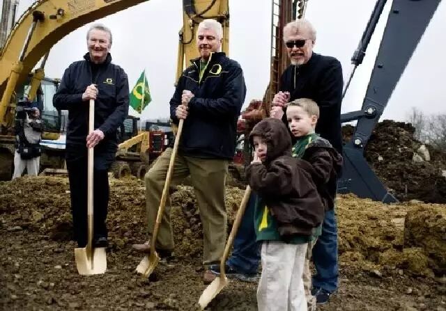 2009年2月,菲尔·奈特和孙子们一起在马修·奈特体育馆的动工仪式上