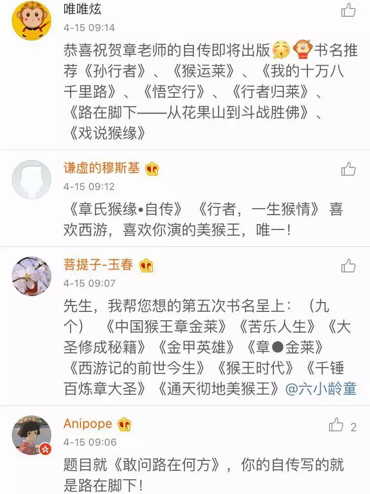 那么,网友都替六小龄童的自传起了哪些书名呢?