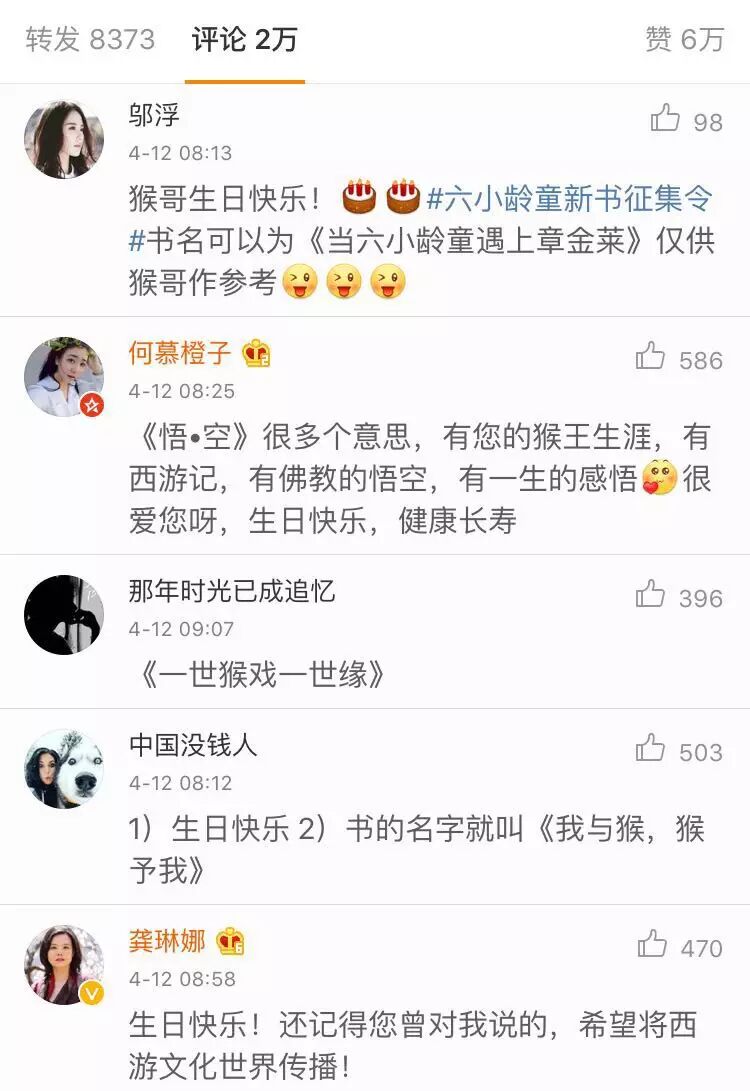 美猴王果然出手不凡,这道“新书征集令”一发出,网友留言已经有2万条了!就连唱《金箍棒》的龚琳娜老师都乱入了一把~