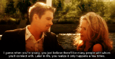 我看了两遍《日落之前》,并在两遍中间重看了《日出之前》,但我没法说哪部电影更好。它们似乎都实现了让-吕克·戈达尔在六十年代表达过的野心——通过偶然达致必然(achieve 「the definitive by chance」)。