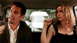 和杰西一起坐在一辆车的后座时,席琳趁他不注意开始轻抚他的头发,然后突然缩回了手。这个戛然而止的手势有一种悲剧感,是时间之重(the weight of time)的印记。