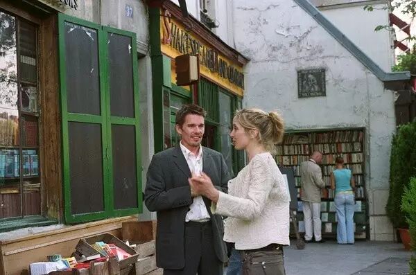 杰西正在宣传的那本在美国销量颇佳的小说,是以他此前与席琳的邂逅为蓝本的虚构作品,结尾他们约定六个月后在维也纳再次相会——他们之前曾决定不告诉对方自己的姓氏与住址,以免他们的关系变得平庸寡淡。