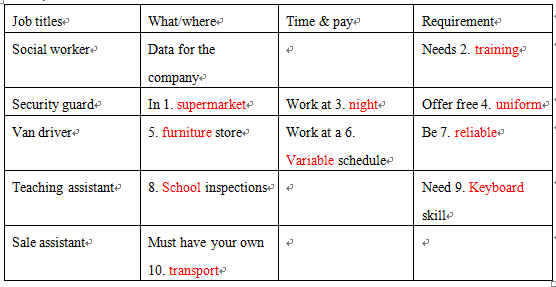 解析: 常见的兼职场景,只是有部分词汇如variable拼写可能会有考生不熟悉,定位需要通过横纵轴综合定位。
