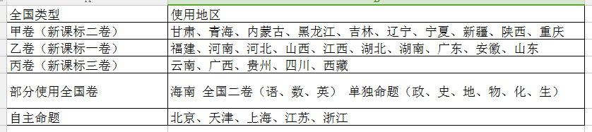 我们知道,目前我国内地各省份的高考命题标准有所不同,主要分为以下五类: